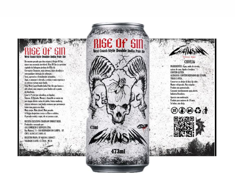 Rise Of Sin é o próximo capítulo da linhagem profana de IPAs da Cervejaria Chainsaw, mais intensa, mais alcoólica e sem qualquer intenção de redenção.